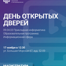 Институт информационных технологий и программирования приглашает тебя на День открытых дверей для поступающих в магистратуру по направлению 09.04.03 «Прикладная информатика», направленность «Информационная сфера»!