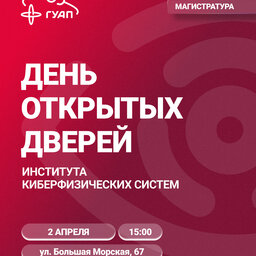 Приглашаем на День открытых дверей Института киберфизических систем для поступающих в магистратуру, который состоится 2 апреля в 15:00 по адресу улица Большая Морская, 67.