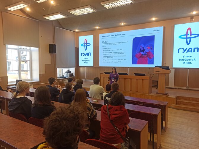 Презентацию университа для них провела Анна Шуйская, амбассадор ГУАП и студентка 3 курса Института радиотехники и инфокоммуникационных технологий.