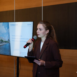 В рамках выставки Ксения Шевелёва, ведущий специалист Центра организации приёма ГУАП, выступила с презентацией университета. Она рассказала участникам выставки о студенческой жизни в ГУАП и о возможностях, которые университет предоставляет своим студентам.