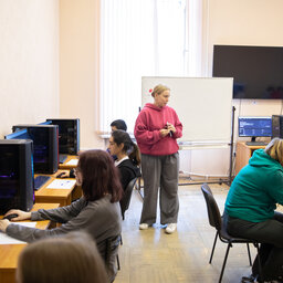 Помимо этого, для школьников была организована презентация университета от Арины Федотовой, амбассадора ГУАП, и Ивана Рыжова, амбассадора ГУАП и студента 1 курса магистратуры, и экскурсии по лабораториям Института радиотехники и инфокоммуникационных технологий.