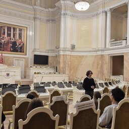 Погружение в тонкости деятельности и работы городского парламента началось с посещения Информационно-просветительского парламентского центра, где студенты познакомились с историей Мариинского дворца, тесно связанной с историей российского парламентаризма.