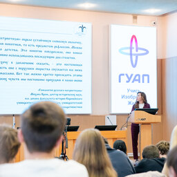 С приветственной речью на мероприятии выступила проректор по воспитательной работе и молодежной политике ГУАП Лариса Николаева: