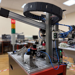Прибор для измерения цветовых характеристик объектов был внедрён в конвейерную систему мехатронной станции MP-9S. Дополнительно для его правильной работы были разработаны и установлены направляющие, центрующие объекты на конвейерной ленте, система калибровки положения датчика, а также кожух-ширма, значительно уменьшающий влияние внешних факторов на результаты измерений.