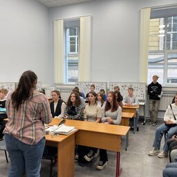Презентацию университа для ребят провела Шуйская Анна, сотрудник Центра организации приёма и студентка 4 курса бакалавриата Института радиотехники и инфокоммуникационных технологий.