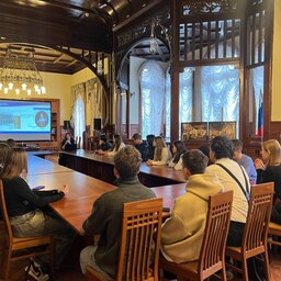На площадке в Санкт-Петербургской торгово-промышленной палате прошла встреча Ирины Карпенко, директора Департамента внешних связей СПб ТПП, со студентами 1 и 2 курсов направлений «Международные отношения», «Таможенное регулирование внешнеэкономической деятельности» и «Международный бизнес»