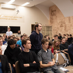 Участниками лекции были студенты и сотрудники ГУАП. Встреча проходила в научно-выставочном зале Леонардо да Винчи.