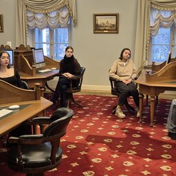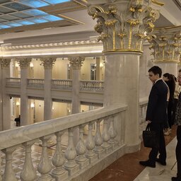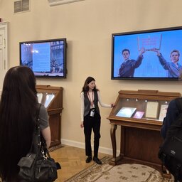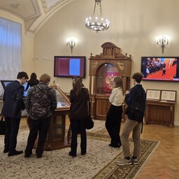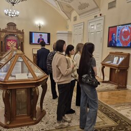 В ходе экскурсии студенты ознакомились с историей и архитектурными особенностями здания, увидели восстановленные интерьеры, посетили домовой храм, узнали, как функционирует Электронный читальный зал, побывали в Зале Конституции, где представлены печатные издания, фотохроника, архивные документы, отражающие историю российского конституционализма от зарождения конституционных идей до принятия действующей Конституции.»