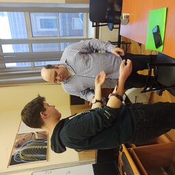 Затем Александр Захарович Яфаров, кандидат технических наук, доцент Института радиотехники и инфокоммуникационных технологий, провёл для школьников мастер-класс «Кто-то краснеет, а кто-то бледнеет — а почему?» с дистанционной регистрацией микроциркуляции с помощью датчиков и