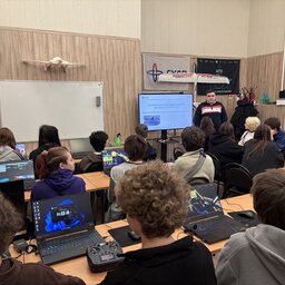 А Антон Сергеевич Костин, доцент Института аэрокосмических приборов и систем, провёл для школьников экскурсию по лаборатории БАС. Ребята узнали, что в лаборатории ГУАП можно научиться полному циклу создания и управления дронами: от сборки квадрокоптеров до исследования их полетных характеристик.