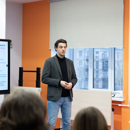 - Экскурсию по лаборатории искусственного интеллекта провёл Евгений Алексеевич Майер, старший преподаватель Института фундаментальной подготовки и технологических инноваций. Он рассказал школьникам о проектах, над которыми ведется работа в лаборатории искусственного интеллекта, таких как поведенческий анализ на логистических объектах, система автоматизации трудоустройства иностранных граждан на работу (НИОКР), система автоматизации проверки домашних заданий и др.