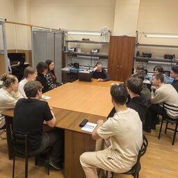 Ребята посетили лабораторию радиотехники, где Александр Авраменко, ассистент кафедры 22, провел экскурсию, подробно рассказал о различных аспектах физики и о проводимых на кафедре экспериментах.