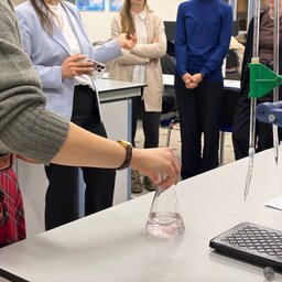 - Александра Сергеевна Смирнова, старший преподаватель и инженер Института фундаментальной подготовки и технологических инноваций, показала школьникам лабораторию мониторинга и контроля природно-технических систем. Здесь обучающиеся узнали, как проходят подготовка к отбору проб тестовой газовоздушной смеси, титриметрический анализ, определение жесткости воды из источников централизованного водоснабжения, спектрофотометрический анализ проб технической воды.