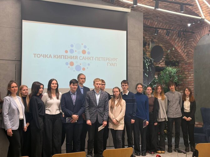 Презентацию университета в пространстве «Точка кипения — Санкт-Петербург. ГУАП» для ребят провела Ксения Шевелёва, ведущий специалист Центра организации приёма ГУАП.