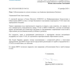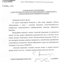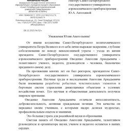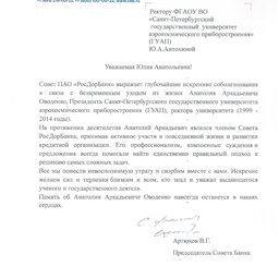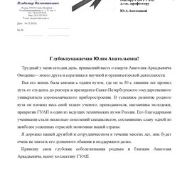 В связи с уходом из жизни Анатолия Аркадьевича Оводенко, Президента Санкт-Петербургского государственного университета аэрокосмического приборостроения, ректора университета с 1999 по 2014 годы, коллеги и партнёры ГУАП выражают соболезнования