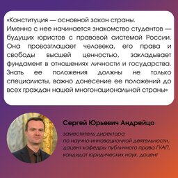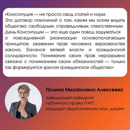 Преподаватели Института технологий предпринимательства и права ГУАП поделились своими размышлениями о значении Конституции и её роли.