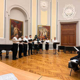 Прозвучала духовная музыка композиторов Павла Чеснокова, Сергея Рахманинова и др. в исполнении великолепного хора Чесменской церкви под руководством регента Дарьи Синцовой. Музыка, которая звучала, а капелла (без сопровождения музыкальных инструментов) и уносилась эхом под купол Георгиевского зала, на всех слушателей произвела магическое впечатление.