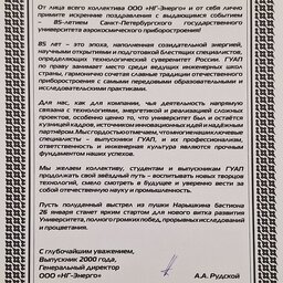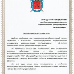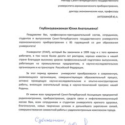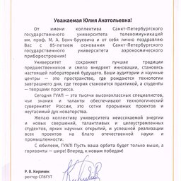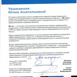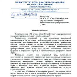 С 85-летием Санкт-Петербургский государственный университет аэрокосмического приборостроения поздравляют партнеры: