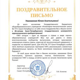 - Директор ГБОУ „ИТШ № 777“ Санкт-Петербурга В. В. Князева;