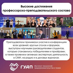 • Высокие достижения профессорско-преподавательского состава