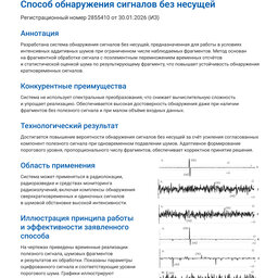 Разработана система обнаружения сигналов без несущей, предназначенная для работы в условиях интенсивных аддитивных шумов при ограниченном числе наблюдаемых фрагментов. Метод основан на фрагментной обработке сигнала с поэлементным перемножением временных отсчётов и статистической оценкой шума по результирующему фрагменту, что повышает устойчивость обнаружения кратковременных сигналов.