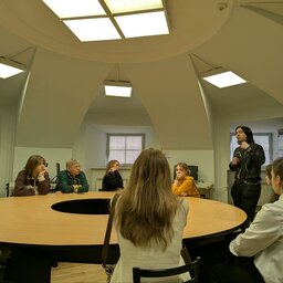 - Барякшева Валентина Павловна, ассистент и инженер 1 категории Института аэрокосмических приборов и систем, провела презентацию Демонстрационного зала систем управления летательных аппаратов, а также рассказала про Кафедрe эксплуатации и управления аэрокосмическими системами.