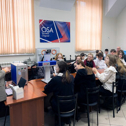 В научно-исследовательской лаборатории фотоники и квантовых технологий о современной лазерной технике, новейших разработках рассказала старший преподаватель кафедры 23 Сердюк Ксения, ассистент кафедры 23 Рывкина Яна рассказала лицеистам