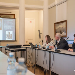После окончания в Атриуме-1 торжественной части для участников и гостей мероприятия в Белой гостиной прошли лекции на темы: «Разработки Института аэрокосмических приборов и систем». Лекцию представил и. о. заведующего кафедрой аэрокосмических измерительно-вычислительных комплексов ГУАП Владимир Перлюк.