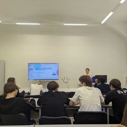 Учащиеся 10 класса послушали презентацию университета, которую провела Арина Федотова, амбассадор ГУАП и студентка 2 курса Института фундаментальной подготовки и технологических инноваций, а также правила приёма 2026 года, про которые рассказала Анна Шуйская, амбассадор ГУАП и студентка 4 курса Института радиотехники и инфокоммуникационных технологий.