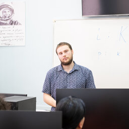 Кафедра аэрокосмических компьютерных и программных систем представила Центр аэрокосмических исследований и разработок. С направлениями работы центра участников познакомил доцент института Андрей Викторович Шахомиров.