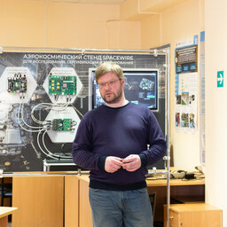 Особое внимание было уделено кафедрам и их научно-исследовательской базе. Представители кафедры аэрокосмических измерительно-вычислительных комплексов продемонстрировали работу учебно-исследовательской лаборатории «Проектирование малых космических аппаратов (МКА)» и научно-исследовательской лаборатории «Инженерия космических систем». О деятельности кафедры рассказали исполняющий обязанности заведующего Владимир Владимирович Перлюк и Алексей Фёдоров.