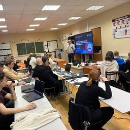 24 ноября Анна Великородная, заместитель директора Центра организации приёма ГУАП, и Ростислав Бакурин, студент Факультета среднего профессионального образования, выступили для обучающихся 10-11 классов МОБУ «СОШ „Янинский ЦО“.
