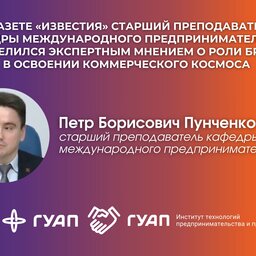 В газете «Известия» Пётр Борисович Пунченко, старший преподаватель кафедры международного предпринимательства, поделился экспертным мнением о роли БРИКС в освоении коммерческого космоса