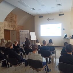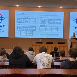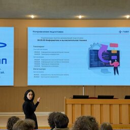 Наш университет посетили учащиеся 10 класса ГБОУ школы № 185. Сначала для ребят была представлена общая презентация про ГУАП, которую провела Арина Федотова, амбассадор ГУАП, студентка 2 курса Института фундаментальной подготовки и технологических инноваций, и Анна Шуйская, амбассадор ГУАП и студентка 4 курса Института радиотехники и инфокоммуникационных технологий.