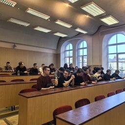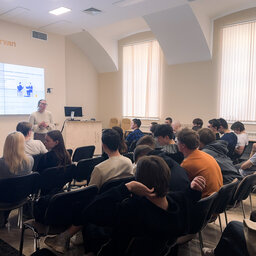 Наш университет посетили учащиеся 10 класса ГБОУ школы № 185. Сначала для ребят была представлена общая презентация про ГУАП, которую провела Арина Федотова, амбассадор ГУАП, студентка 2 курса Института фундаментальной подготовки и технологических инноваций, и Анна Шуйская, амбассадор ГУАП и студентка 4 курса Института радиотехники и инфокоммуникационных технологий.